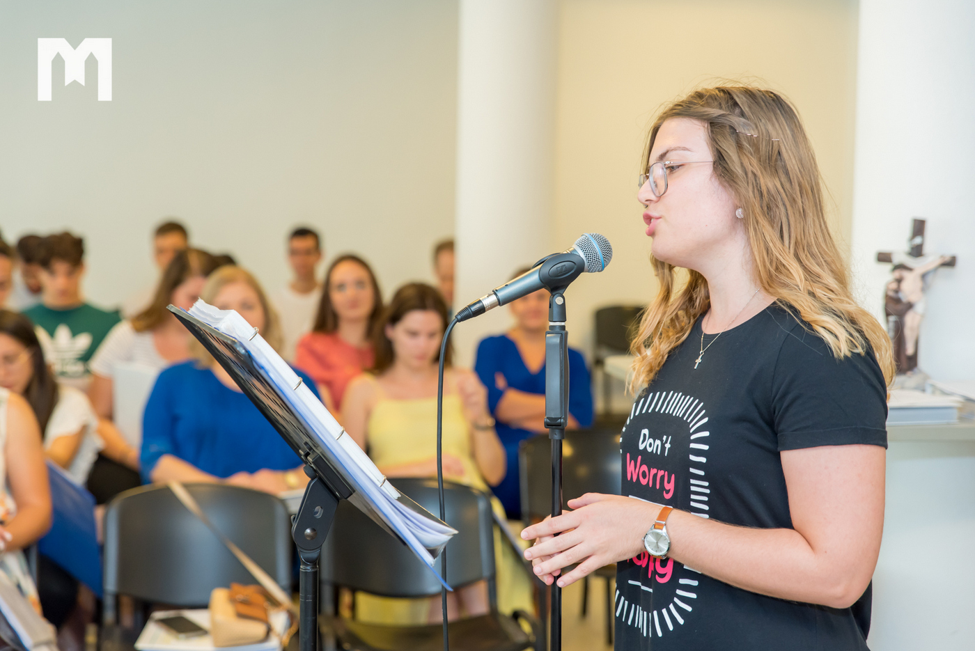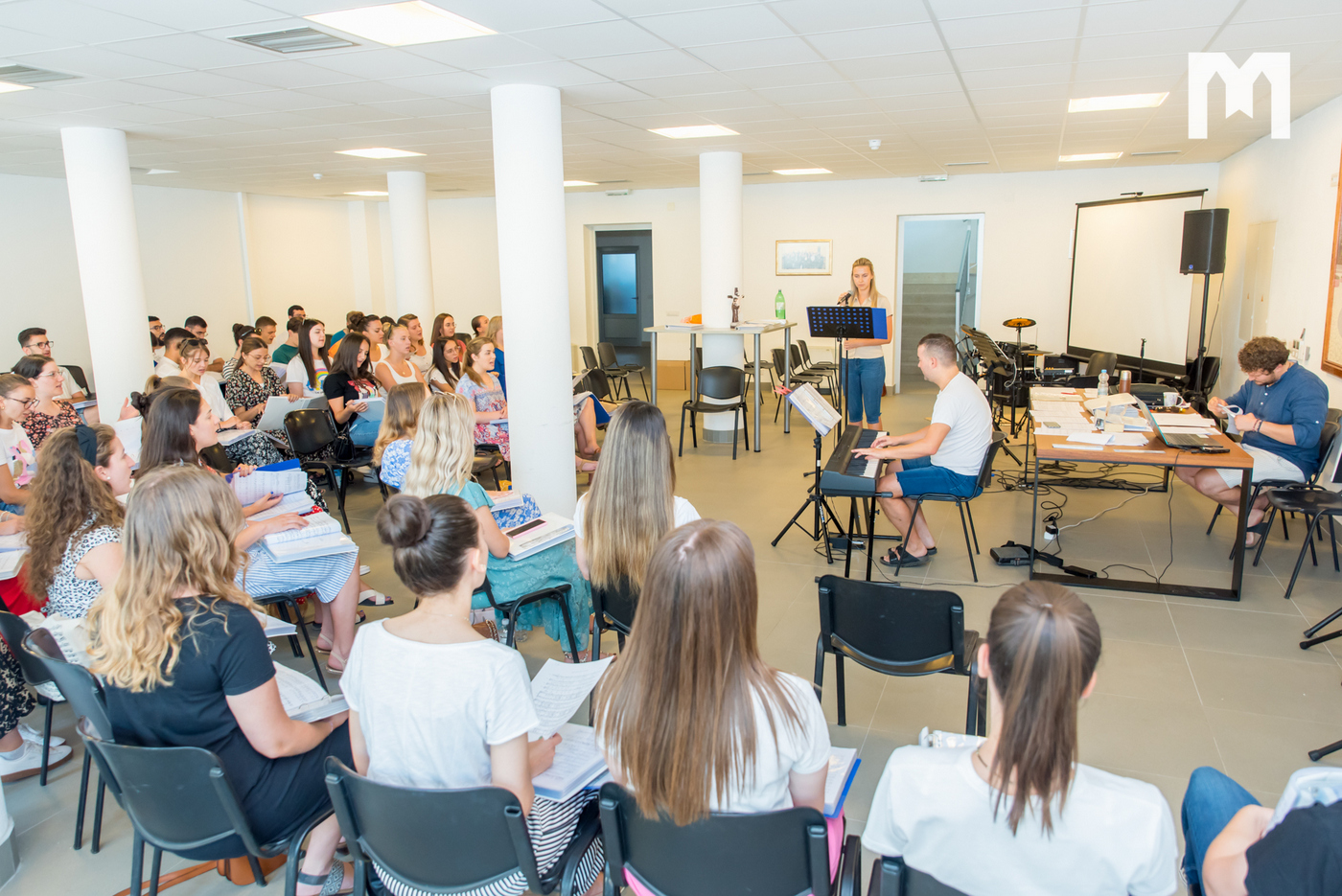 Pod geslom ”Učite od mene i naći ćete mir” (Mt 11, 28-30) ovogodišnji Međunarodni molitveni festival mladih održava se 33. put u Međugorju, a trajat će od 1. do 6. kolovoza. Tisuće mladih i ove godine slušat će kateheze i svjedočanstva, moliti, ispovjediti se, sudjelovati na večernjem molitvenom programu… Mnoge osobe već tjednima pripremaju program kako bi sve prošlo u redu, a jedni od onih bez kojih je Mladifest nezamisliv sve ove godine su mladi iz međunarodnog zbora i orkestra Mladifesta, kojim već godinama ravna profesor Damir Bunoza. Oni već danima vježbaju u našim radijskim prostorijama, a s nekima od njih smo jutros i razgovarali. Dolaze sa svih strana svijeta, a zajednička im je stvar da žele pjesmom slaviti Gospodina.