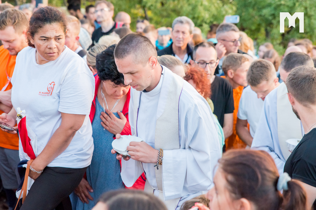 ”Danas je blagdan Preobraženja. Na početku, prije mise, mi nismo vidjeli jedni druge, nismo vidjeli druge osobe. S vremenom za vrijeme mise, bistri se, svjetlo je jače i mi vidimo. Prepoznajemo druge. Moguće je nekada da ne vidimo druge, da ne vidimo dobro u drugima, a današnja svetkovina nam govori da je moguće vidjeti uz pomoć Isusa koji je Put, Istina i Život. Euharistija nam pomaže vidjeti, Božja riječ nam pomaže vidjeti bolje, vidjeti ono što je dobro i činiti dobro. Molimo Gospodina da pročisti naša srca kako bismo mogli vidjeti i činiti dobro”, kazao je fra Marinko Šakota, a svi koji su slavili mise, držali kateheze ili svjedočanstva, mladima su poručili kako nije dovoljno što su sudjelovali na ovom Festivalu mladih, nego da svojim životima u svojim državama i gradovima trebaju prenijeti duh Međugorja, svojim primjerom, svojim životom.
