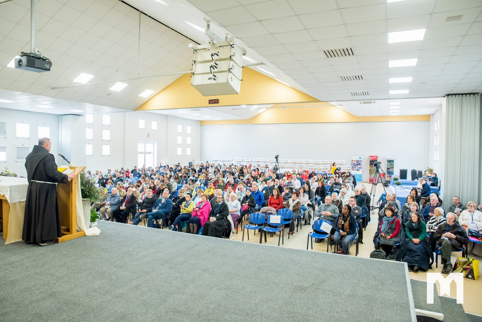 Fra Danko je na početku, kada je vidio ploče s imenima zemalja iz kojih su ljudi došli u ovdje, na ovu duhovnu obnovue, kazao kako organizacija Ujedinjenih naroda nije u New Yorku, nego u Međugorju, ”gdje su se narodi ujedinili”. Potom je i pozdravio sve sudionike ove duhovne obnove koji su pristigli iz čak 40 zemalja svijeta, iz: Perua, Bolivije, Gvatemale, Hondurasa, Meksika, Nikaragve, Venezuele, Španjolske, Brazila, Carucaoa, Argentine, Kolumbije, Kostarike, Čilea, Salvadora, Paname, Paragvaja, Bonairea, Malte, Rumunjske, SAD-a, Irske, Engleske, Kanade, Italije, Poljske, Slovenije, Hrvatske, Bosne i Hercegovine, Njemačke, Švicarske, Austrije, Litve, Ukrajine, Koreje, Belgije, Francuske, Mađarske, Slovačke i Rusije.