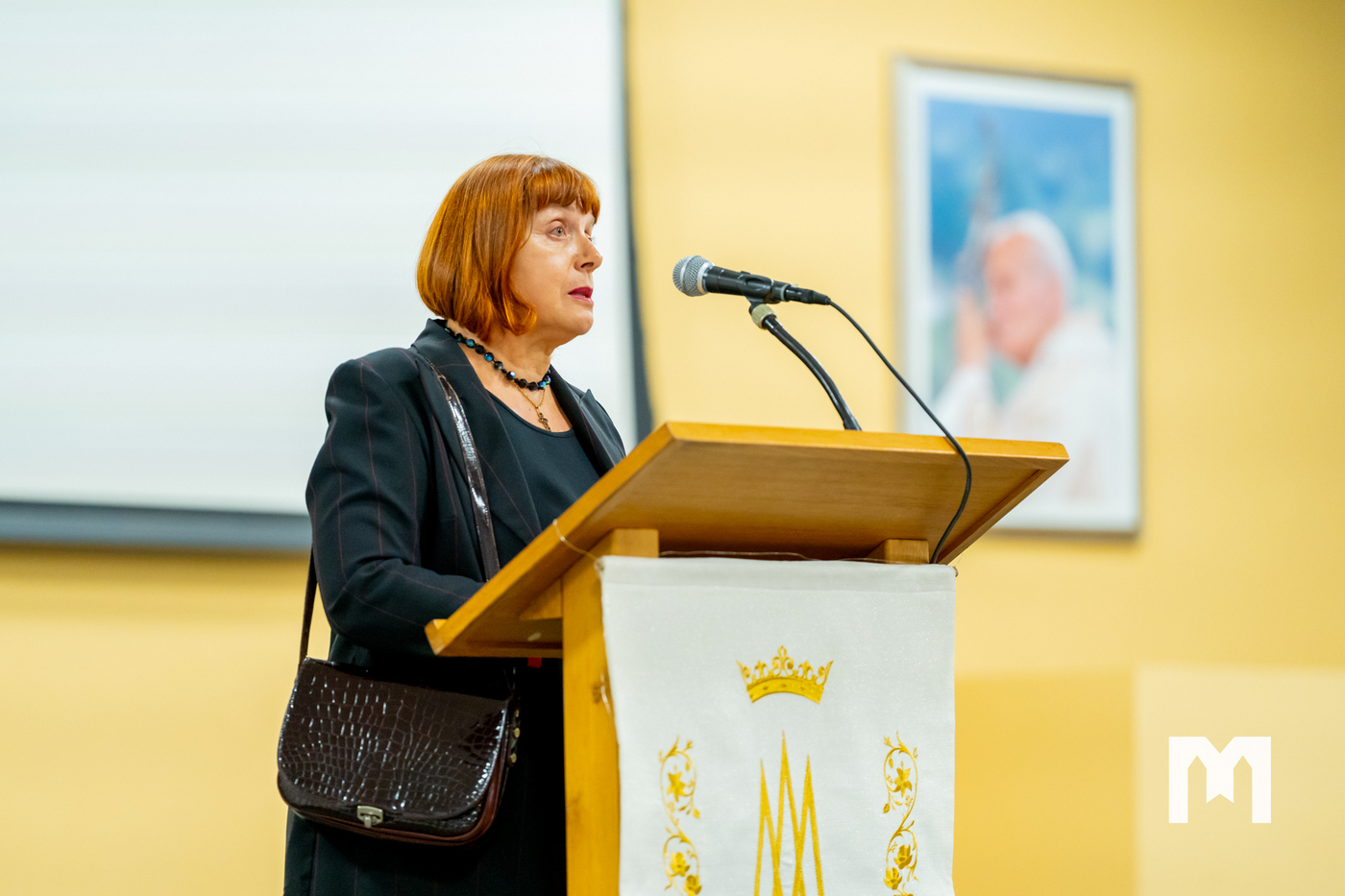 „S ovim filmom želimo potaknuti na proučavanje naše baštine. Film ćete večeras gledati na hrvatskom jeziku, ali filmovi su prevedeni, tako da imamo na talijanskom, njemačkom, engleskom… najviše na engleskom jeziku. Tako da i na taj način želimo popularizirati našu veliku pobožnost kroz stoljeća prema Blaženoj Djevici Mariji. Kada sam ovaj film snimala, iako je Zagreb moj rodni grad, tamo mi je u biti bilo najteže jer nas je Gospodin podsjetio da smo svi tako neznatni i prolazni, jer došao je potres, došla je korona, tako da je tada bilo najteže raditi, ali uz puno srca ipak se to napravilo, jer vjerujem da Božja providnost to vodi. Ja sam imala jedan strahovit nemir, počela sam raditi godinu dana prije, iako to nikada ne radim, jer nisam znala naravno da će biti potres i korona, ali htjela sam snimiti u katedrali svečanost proslave Gospe od Kamenitih vrata, zaštitnice grada, i procesiju, te smo uspjeli to snimiti. Kad smo počeli raditi film, kada je bilo odobreno kao projekt, tada od potresa više se ne bi to mogli snimiti. Tako da uvijek Božja providnost vodi kada se radi nešto lijepo i to neka vam bude jedan lijep poticaj u vašem Marijoljublju”, kazala je, između ostaloga, dr. sc. Hrvojka Mihanović-Salopek prije početka same projekcije.