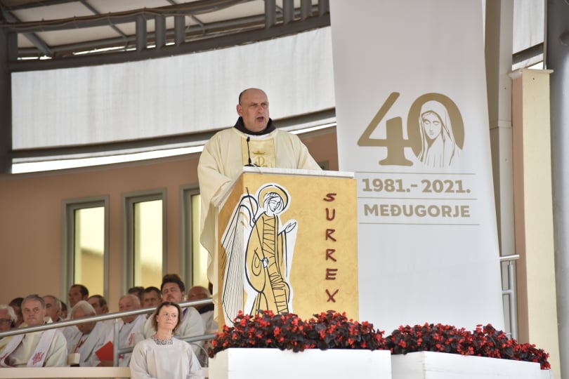 Želio bih večeras ovdje u Međugorju s vama podijeliti radost naše vjere koju otkrivamo u istini da je Blažena Djevica Marija Kraljica Mira, danas prisutna u ovome mjestu, da nas okuplja i potiče na život u Isusu Kristu i njegovu Evanđelju.