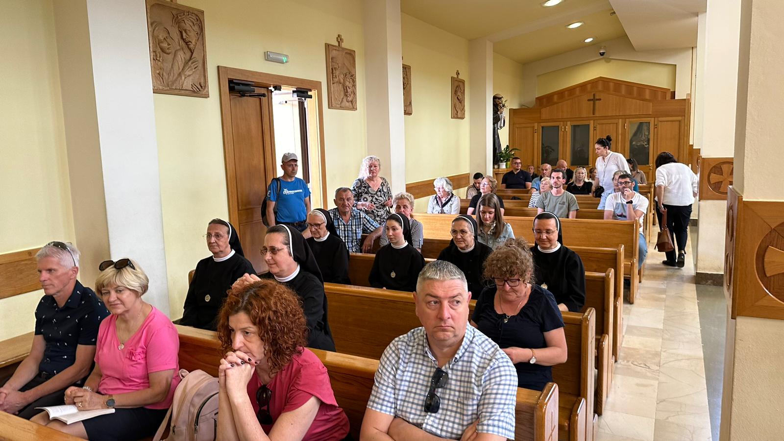 Po dolasku u Međugorje najprije su se poklonili Isusu, a onda uputile molitvu Nebeskoj Majci Mariji. Potom su sudjelovale na misnom slavlju u župnoj crkvi u Međugorju. Nakon molitve i mise susrele su se s jednom talijanskom obitelji koja je prijatelj sestara još iz ratnog perioda. Tu su se uz lijepo osvježenje i okrjepu prisjetile zajedničkog druženja u Italiji 1992. i toliko toga lijepog što im je u tom periodu Gospodin priuštio.