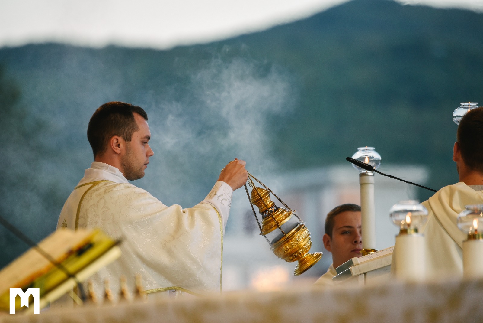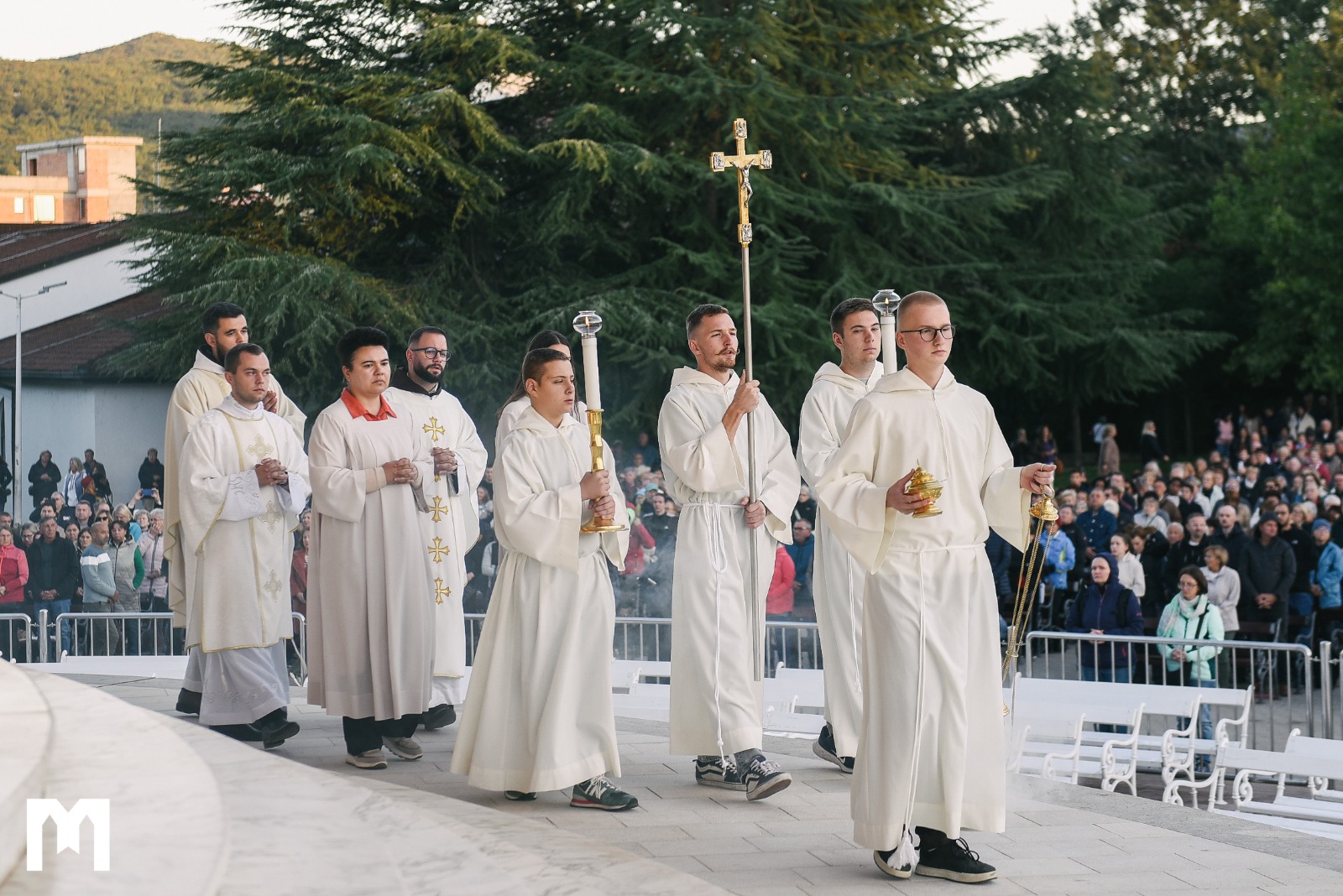 Središnju večernju svetu misu na vanjskom oltaru crkve sv. Jakova predslavio je župni vikar u Međugorju fra Josip Stanić uz koncelebraciju 77 svećenika i uz mnoštvo vjenrika, a krunicu je prije mise predmolio fra Josip Marija Katalinić.