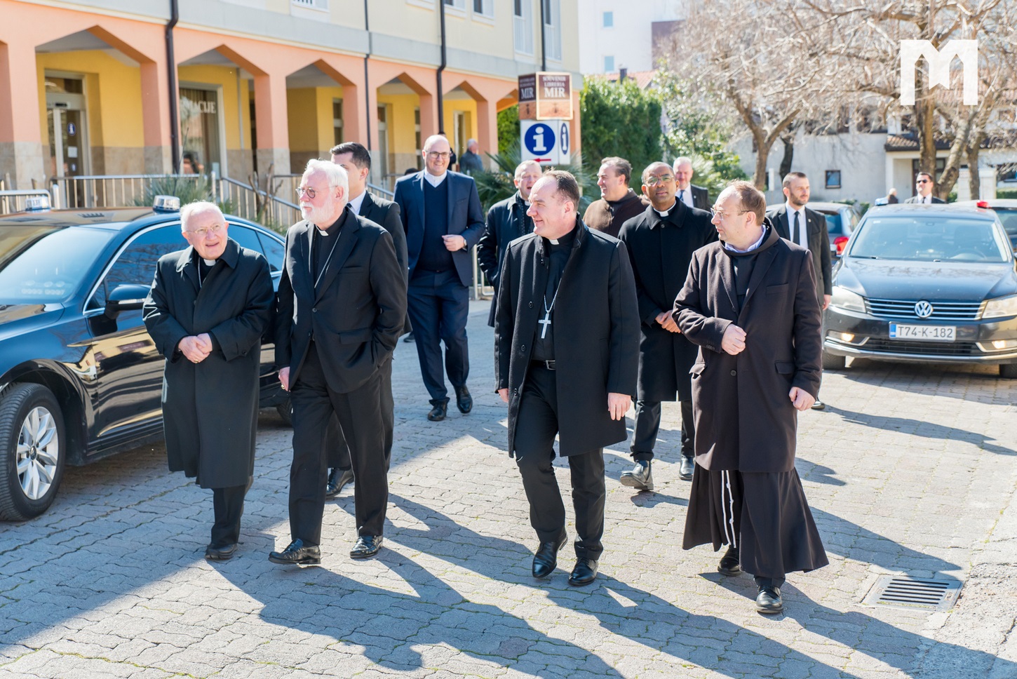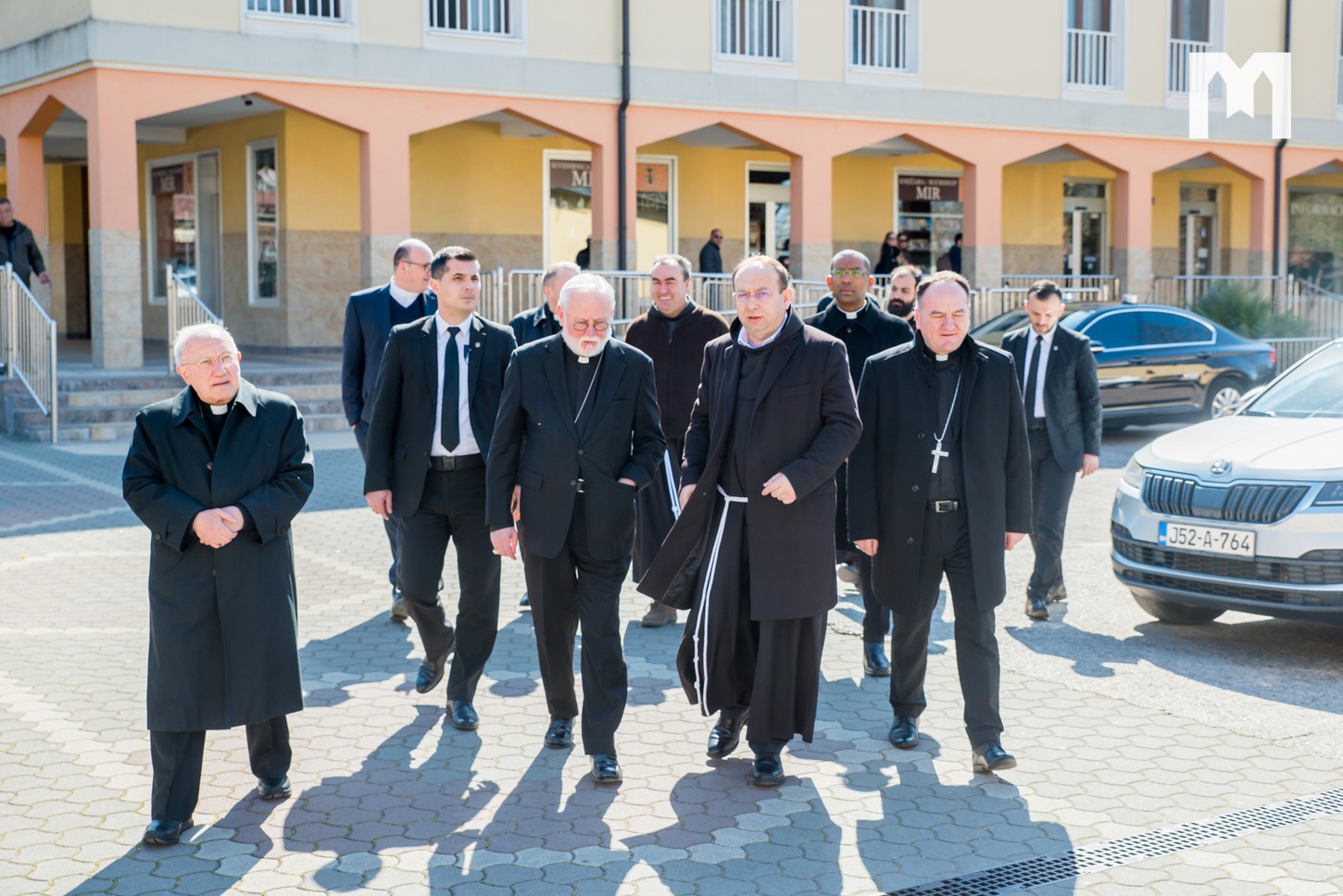 On je stigao u pratnji mons. Petra Palića, biskupa mostarsko-duvanjskog i apostolskog upravitelja trebinjsko-mrkanjskog, vikara hercegovačkih biskupija don Nikole Menala, mons. Janusza Stanisława Błachowiaka iz Državnog tajništva Svete Stolice mons. Amauryja Medine Blanca, otpravnika poslova u Apostolskoj nuncijaturi u Sarajevu.