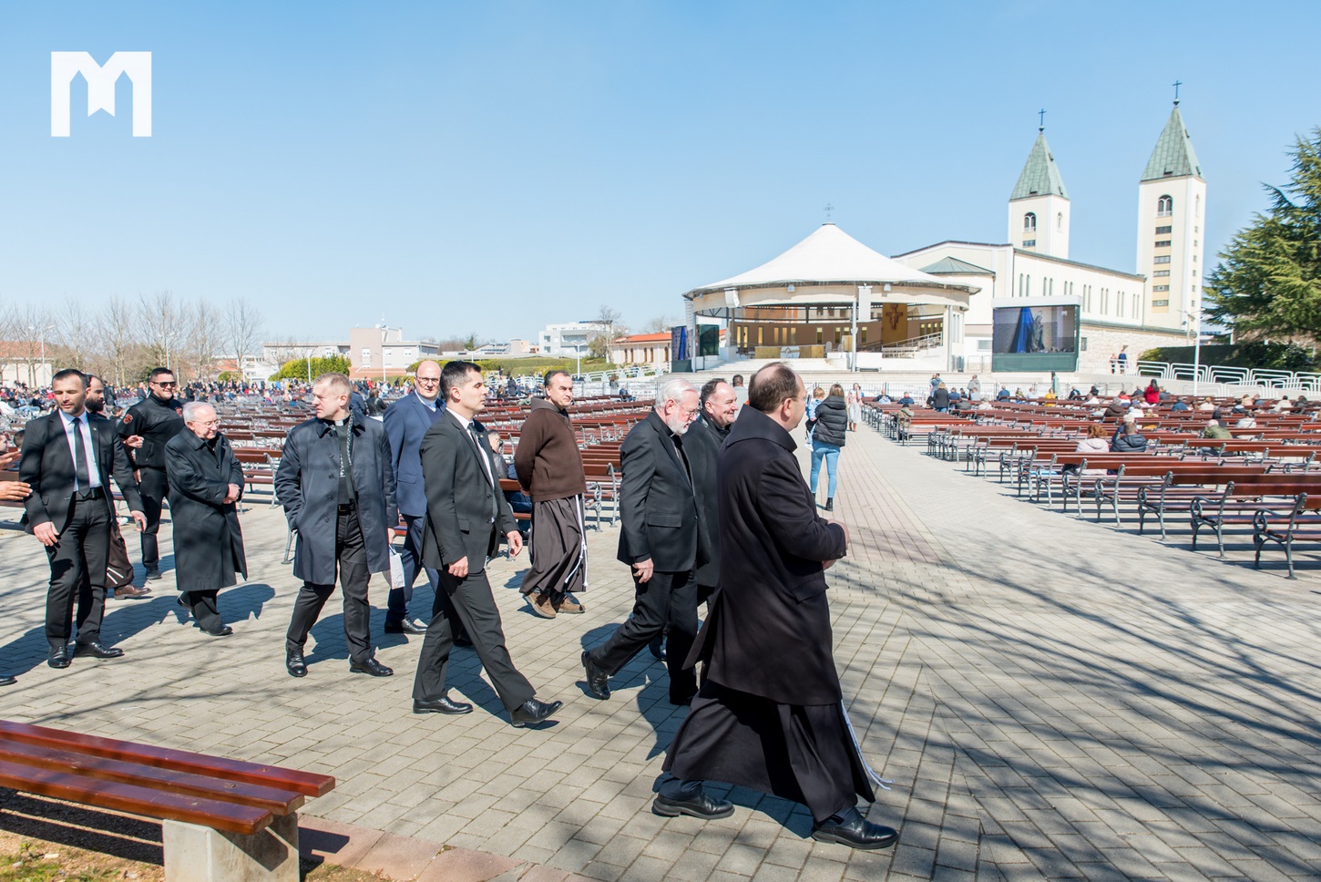 U Međugorju su ih dočekali apostolski vizitator s posebnom ulogom za župu Međugorje nadbiskup Aldo Cavalli, provincijal Hercegovačke franjevačke provincije fra Miljenko Šteko i međugorski župnik fra Marinko Šakota.