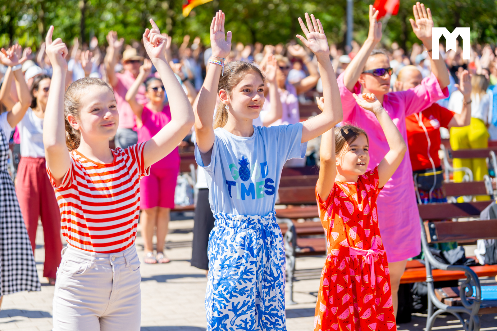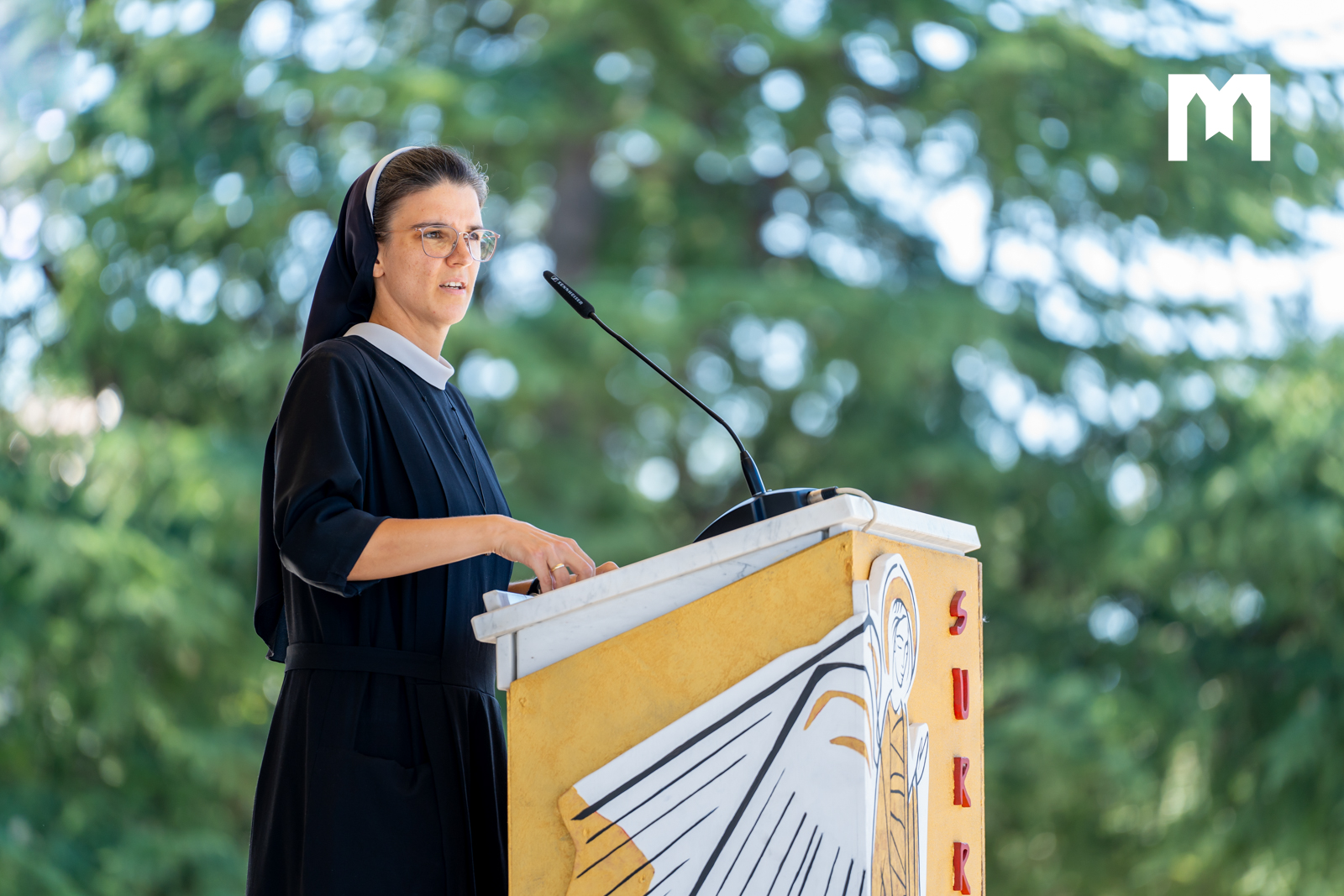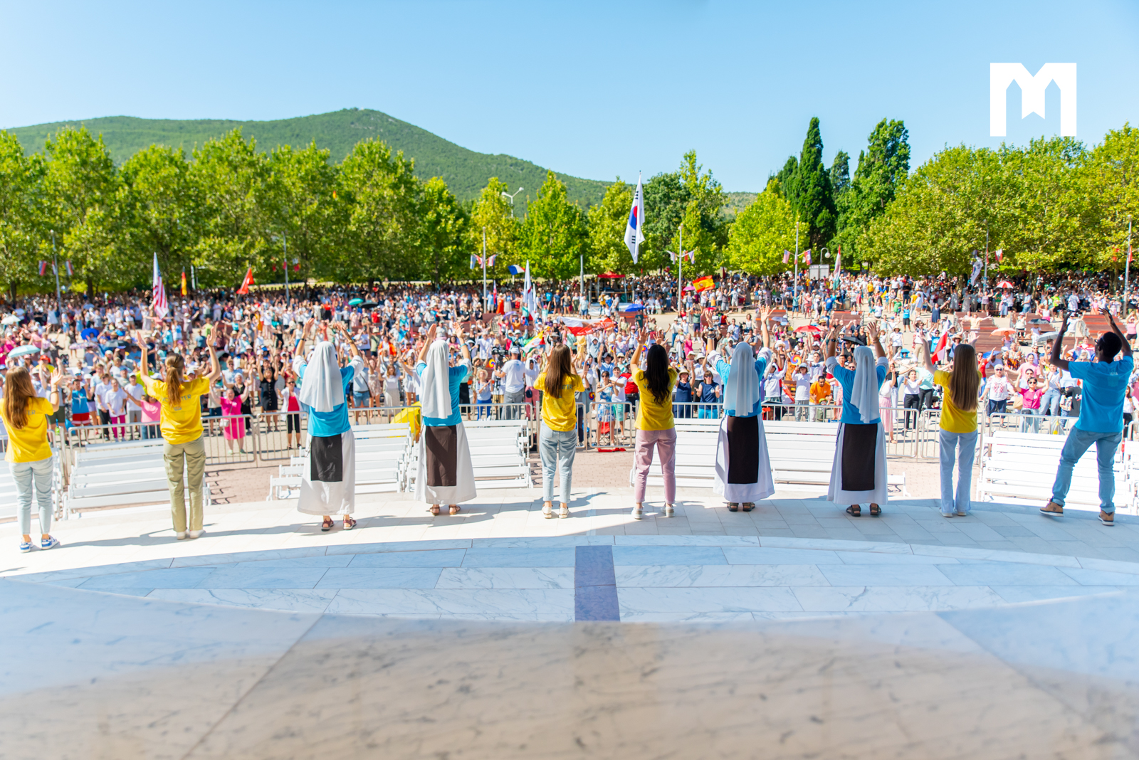 ”Radost koja nije prolazni osjećaj, radost koja ne ovisi o komotnosti života, radost koja se ne temelji na uspjehu, radost kojoj ne treba financijska sigurnost, radost koja ne očekuje puno a prima sve. Toj je radost kojoj nas uče sveci i Blažena Djevica Marija i radost koju možemo udahnuti ovdje u Međugorju i koja me uvijek fascinira u Međugorju jer sam susrela radosne ljude koji u kolicima čekaju da se nahrane s ovog oltara”, kazala je s. Matija Pačar, a poslije njezine kateheze svjedočanstvo su održali bračni par Josip Sušac i Inma Garcia, koji su govorili o svome životu, braku, bračnim krizama koje su prebrodili zajedničkom molitvom.