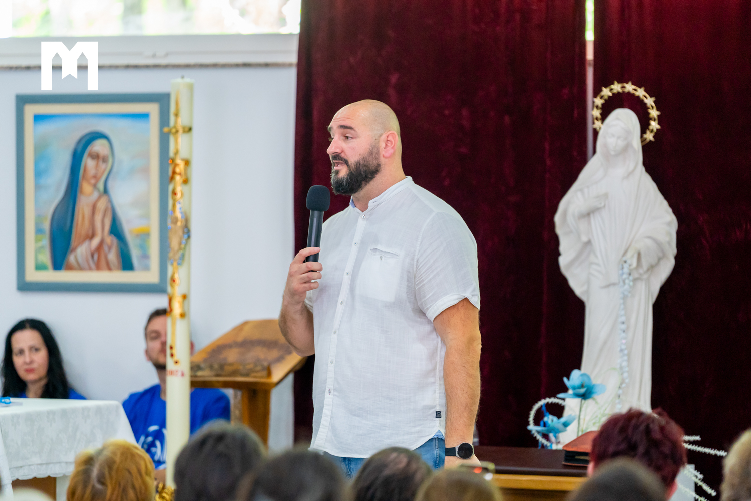 Voditelj duhovne obnove Danijel Čović prije početka obnove kazao nam je kako je ponosan što danas može biti u Međugorju, gdje može sa svim vjernicima, a posebno onima iz dijaspore podijeliti svoje iskustvo vjere i svjedočenje Isusa Krista. Danijel često dolazi u Međugorje „nikada prije Međugorja nisam doživio jedan tako poseban zahvat kao tu, milost, preobraćenje i dodir Gospin.“ Dodaje kako je ”Međugorje sveto mjesto i mjesto gdje Gospa djeluje i dijeli milosti šakom i kapom”.