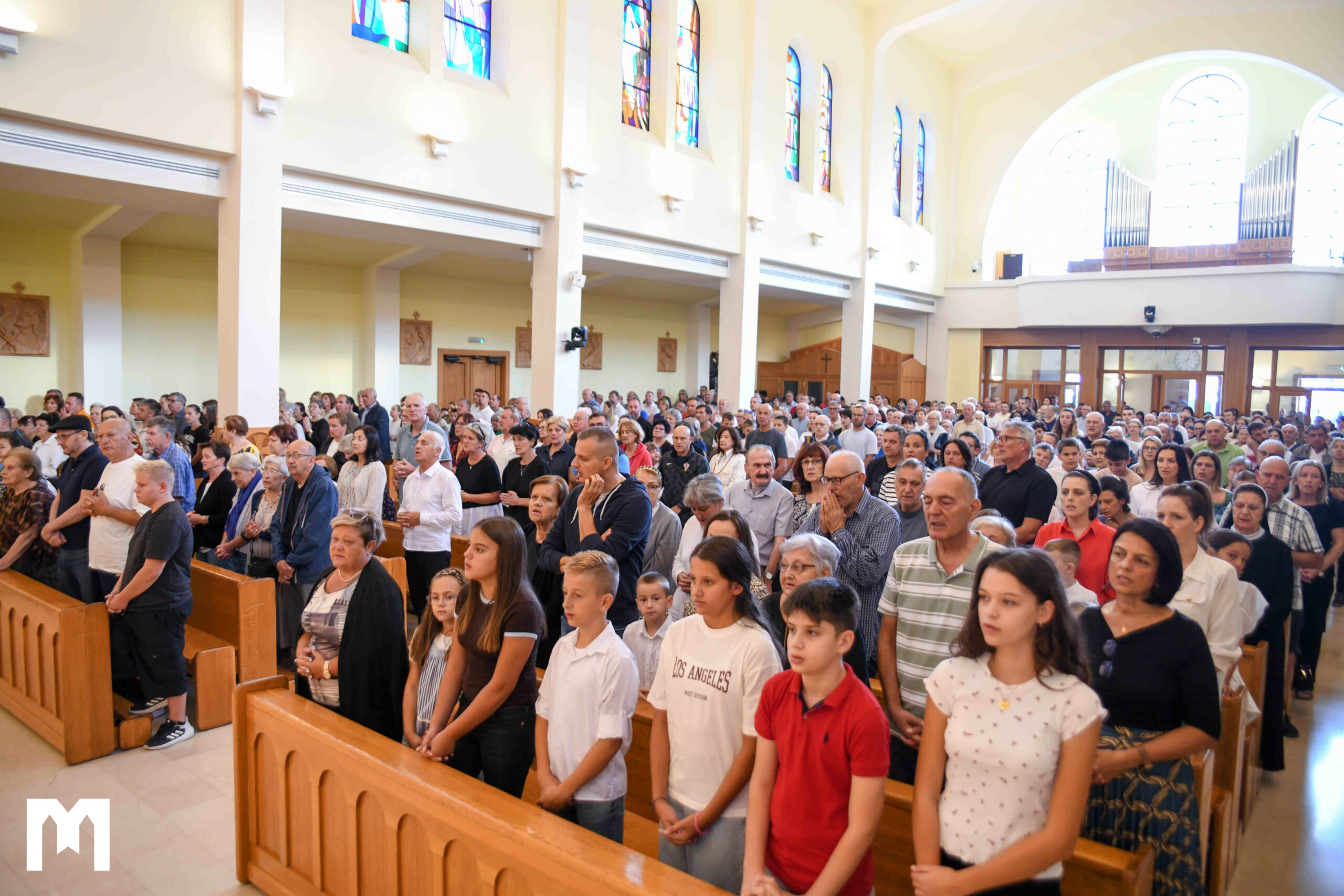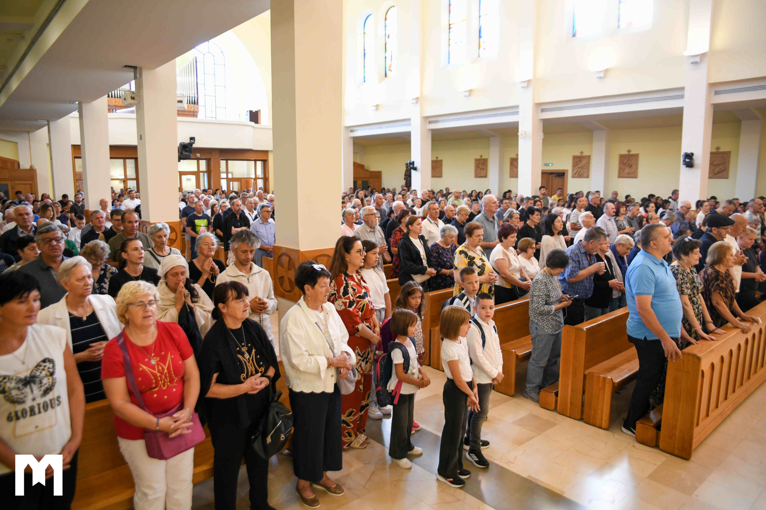 Mnoštvo djece, djelatnika u školi i njihovih roditelja bilo je jutros na ovoj svetoj misi kako bi gledajući Mariju kao uzor započeli novu školsku godinu. U svojoj homiliji fra Zvonimir je kazao kako je Marijino rođenje zasjenjeno Isusovim rođenjem.