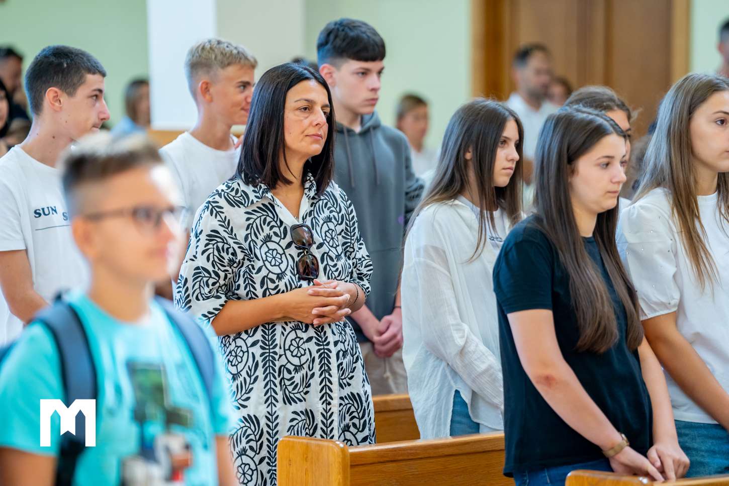 „Zato valja ozbiljno i savjesno pristupiti početku školske godine. Važno je dobro rasporediti vrijeme za obveze koje imamo. „Dobar početak polovica je učinjenog posla”, veli narodna poslovica. Uz vas su vaši roditelji koji vas potiču i u svemu pomažu da uspijete i budete dobri đaci. Tu su vaši nastavnici i učitelji koji će vas sada, nakon svoga odmora, novim elanom uključivati u nastavni proces učenja i razumijevanja školskog gradiva, širenja vaših obzora znanja i stjecanja novih spoznaja i umijeća. Oni će nastojati uvažavati vaše različitosti i pristupati svakome od vas posebno kako bi vam pomogli da što bolje razvijate svoje sposobnosti u uzajamnom odnosu i dvosmjernoj komunikaciji. Svi mi zajedno, đaci i nastavnici, učitelji, činimo školsku zajednicu. Svi smo jedni na druge upućeni i jedni za druge odgovorni. Nastojmo što bolje međusobno surađivati na dobro i pojedinaca i škole kao cjeline tako da i nama Krist može jednoć uputiti riječi Evanđelja: Slugo vjerni i dobri, uđi u radost Gospodara svoga. Amen”, kazao je u svojoj propovijedi fra Marin Mikulić, koji je na kraju same svete mise zajedno sa svim učenicima, roditeljima i djelatnicima škole u molitvi zazvao Duha Svetoga da siđe na sve prisutne i da im pomaže i dalje u njihovom učenju i stjecanju novih znanja.