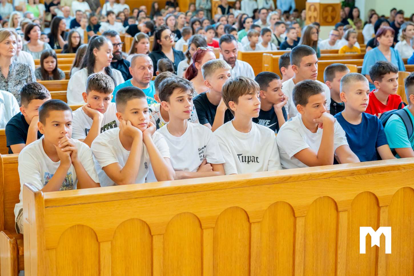 „Treba ranije ustajati da ne bismo zakasnili na nastavu, u školi nas čeka rad i disciplina, pozorno slušanje i učenje, testovi i pripreme gradiva i sve one druge stvari u školskom svagdanu. Draga djeco, danas vam počinje nova školska godina. Svaki posao treba početi s Bogom i molitvom, da nas vodi i pomaže njegova ruka u našim obvezama prema školi. Crkva zato blagoslivlje svaki početak, zaziva Duha Svetoga da nas prati do svršetka. Učinite to i vi, počnite s Bogom na početku još jedne školske godine. Zato draga djeco učite, tko ne uči griješi protiv Boga: jer je lijenost jedan od najvećih izvora grijeha, zato učite. Škola je priprava za život i zato je važno da učite i da primate sjeme, koje će poslije izrasti iz kojeg ćete moći kasnije žeti za svoj život. Međutim, idući u školu, ne zaboravite Božju školu: svoju crkvu, svetu misu, sakramente, vjeronauk. U školi učite za ovaj život, na vjeronauku učite za svoju vječnost. Prvo je važno, drugo je beskrajno važno. U školi imate važnih predmeta koji su vam potrebni za ovaj život. Ali zapamtite, Evanđelje je najveća škola, vjeronauk je važan predmet uz sve ostale”, kazao je fra Marin Mikulić naglasivši kako nas vjeronauk uči kako da dođemo do Božjega Kraljevstva.