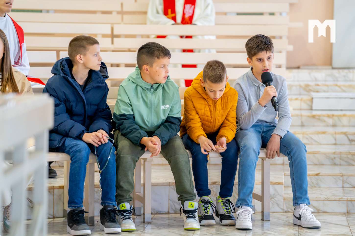 „Mi se uvijek iznova susrećemo s tom poteškoćom vlastitih nemira, straha i briga i uvijek sa tom svojom malovjernošću otkrivamo koliko još nismo postali maleni poput malene djece. Danas su ova djeca iz Međugorja predmolila krunicu, pridružila su se inicijativi da milijun djece ovoga svijeta moli krunicu za mir, da moli za mir u ovome svijetu. I mi vjerujemo da Bog čuje molitvu malenih, zato je i papa Franjo pozvao na poseban dan koji će biti krajem listopada, ne samo nas katolike, nego i ostale kršćanske denominacije, ostale ljude dobre volje koji traže i žele biti u miru, da zaista mole za taj mir. Kad mi molimo za mir i kada budemo postili taj dan, to je važan dan u kojemu mi izražavamo kao djeca svoje povjerenje u Nebeskog Oca”, kazao je fra Augustin Čordaš dodavši da mi sami ne možemo ništa.