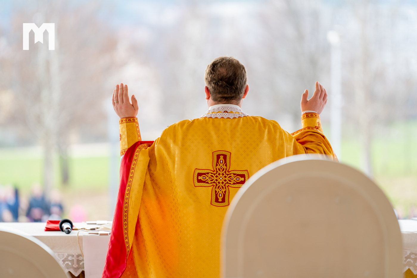 Slavili su i liturgiju po svom obredu na vanjskom oltaru crkve sv. Jakov au Međugorju, a među njima je bio i apostolski vizitator s posebnom ulogom za župu Međugorju nadbiskup Aldo Cavalli. Mnogi su od njega tražili blagoslov, a on je strpljivo stajao dok se red ispred njega stalno povećavao i svima koji su to željeli udijelio svoj blagoslov i riječ utjehe u ovim za ukrajinski narod teškim trenucima.