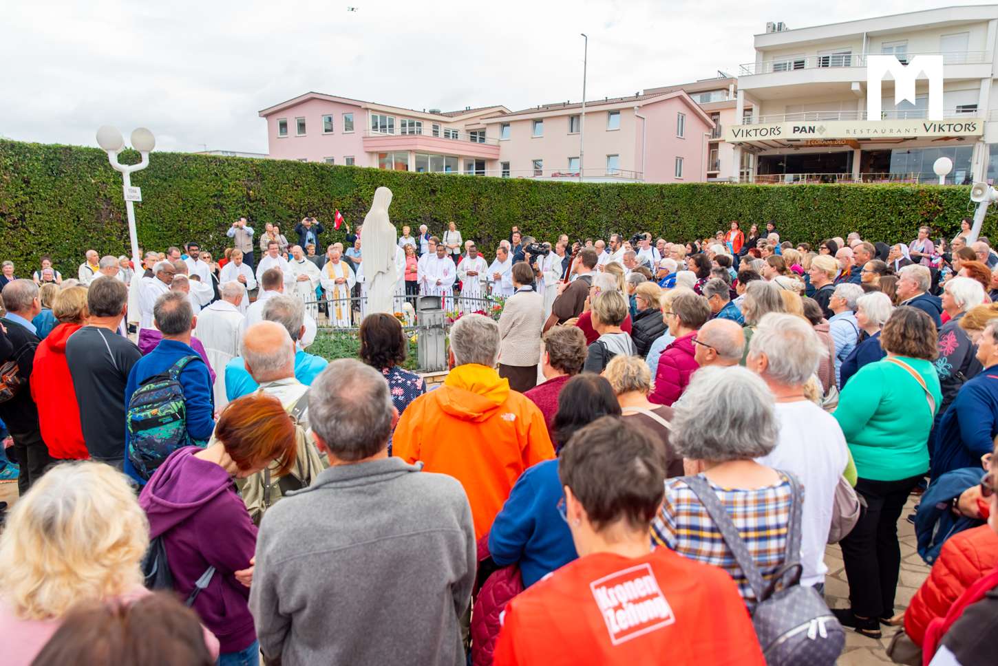Tako je više od 500 hodočasnika jutros u 9 sati u prepunoj crkvi sv. Jakova u Međugorju slavilo svetu misu na njemačkom jeziku, a nakon svete mise, predvođeni svojim svećenicima krenuli su u procesiji prema Gospinom kipu koji se nalazi ispred crkve sv. Jakova. Pred Gospinim kipom su najprije izmolili molitve zahvale i prošnje, te zatim i posvetu Austrije i njenih stanovnika Blaženoj Djevici Mariji, a na kraju su i zapjevali nekoliko marijanskih pjesama.