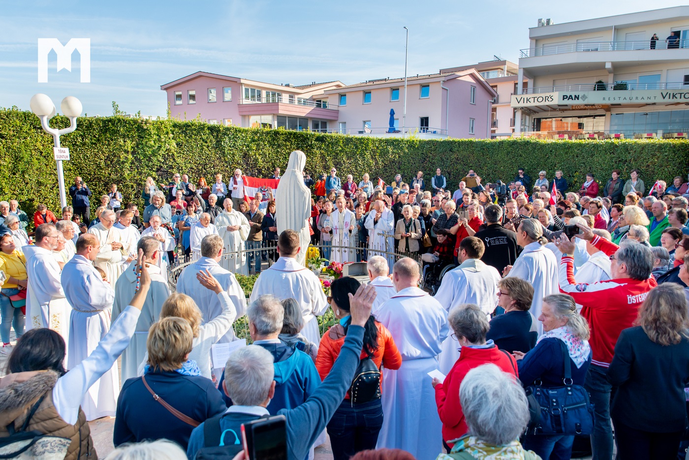 Više od 800 hodočasnika jutros je u prepunoj crkvi sv. Jakova u Međugorju slavilo svetu misu na njemačkom jeziku, a nakon svete mise spontano su se okupili kod Gospina kipa ispred crkve sv. Jakova. Pred Gospinim kipom obnovili su posvetu Austrije i njenih stanovnika Blaženoj Djevici Mariji, izmolili molitve zahvale, te zapjevali nekoliko marijanskih pjesama. Nakon toga u 11 sati u dvorani sv. Ivana Pavla II. slušali su svjedočanstvo vidioca Jakova Čole koji im je govorio o Međugorju, o svom životu, o životu prije i nakon početka Gospinih ukazanja, ali i o nastanku humanitarne udruge “Marijine ruke” koja se danas brine za više od 700 obitelji i pojedinačnih osoba pomažući im s hranom, obućom, odjećom, lijekovima, obnavljanjem domova, pučkom kuhinjom…