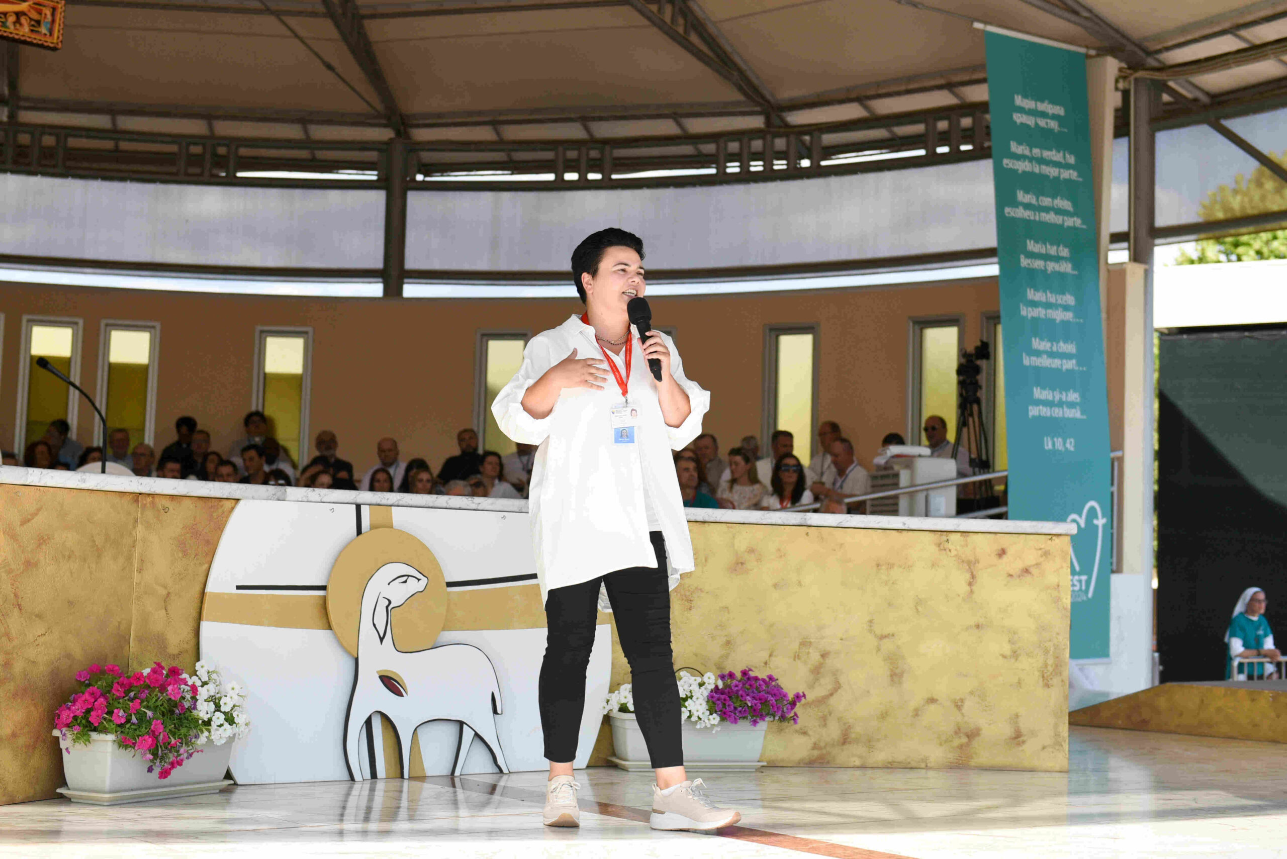 Svoje svjedočanstvo s mladima je podijelila i sestra karmelićanka Dijana Mlinarić, koja je predstavila svoju zajednicu i svoj redovnički poziv i put, nakon čega je uslijedila molitva krunice, a onda i sveta misa, koju je predslavio biskup mostarsko-duvanjski i apostolski upravitelj trebinjsko-mrkanske biskupije mons. Petar Palić uz koncelebraciju 684 svećenika.