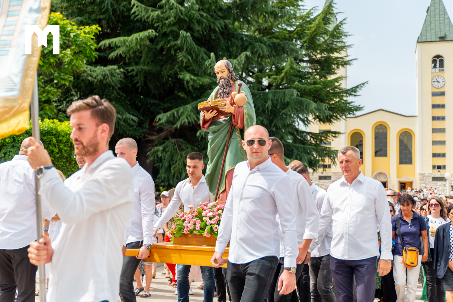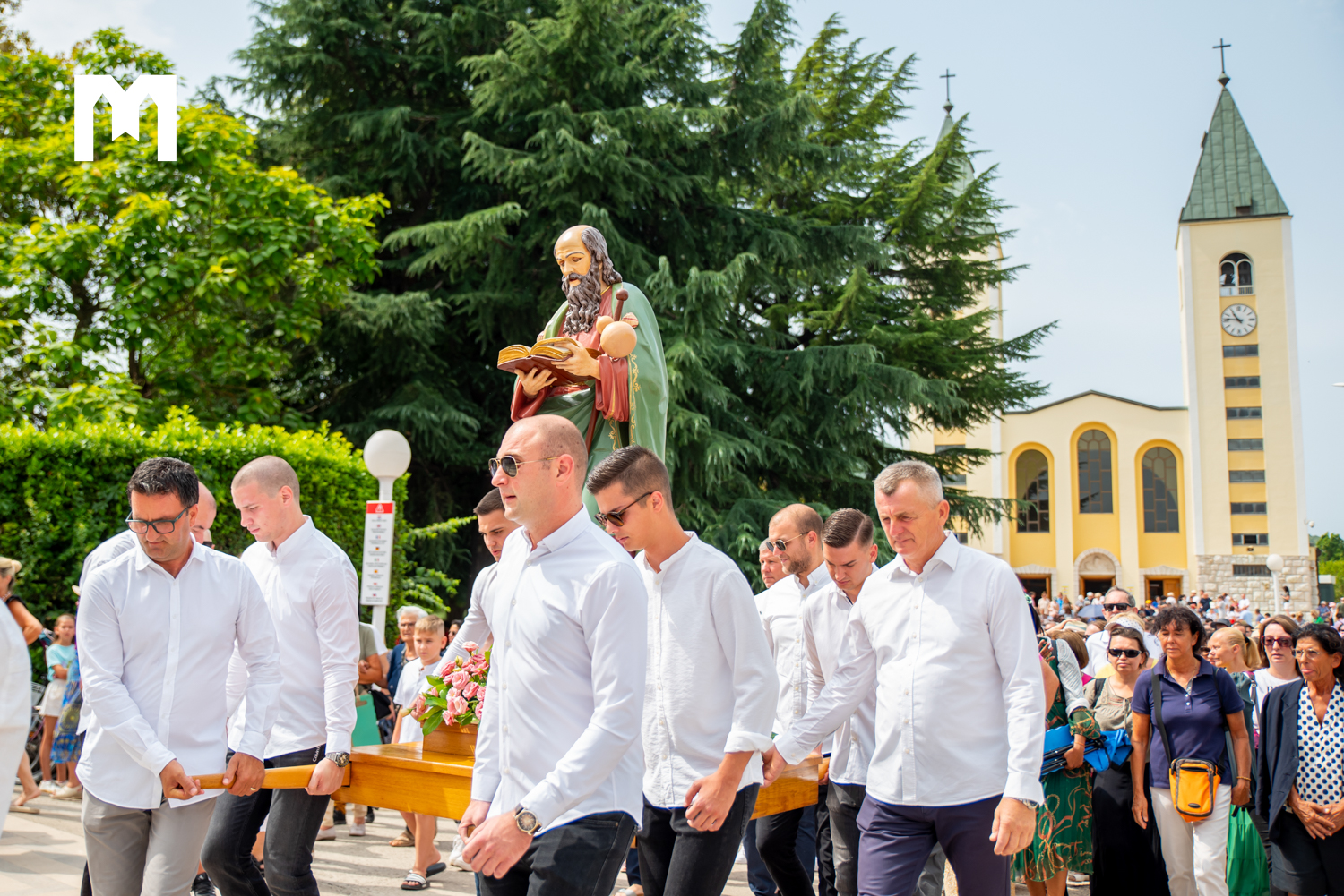 Danas je svetkovina svetog Jakova, apostola, zaštitnika župe Međugorje. Svete mise slavljene su jutros u 7 i 8 sati, a središnja proslava ovog blagdana bila je u Gaju u 11 svetom misom koju je predslavio apostolski vizitator s posebnom ulogom za župu Međugorju nadbiskup Aldo Cavalli. U koncelebraciji su bili sisački biskup mons. Vlado Košić, međugorski župnik fra Zvonimir Pavičić i brojni drugi svećenici, a misi je prethodila procesija iz crkve do Gaja s kipom sv. Jakova i molitvom litanija.