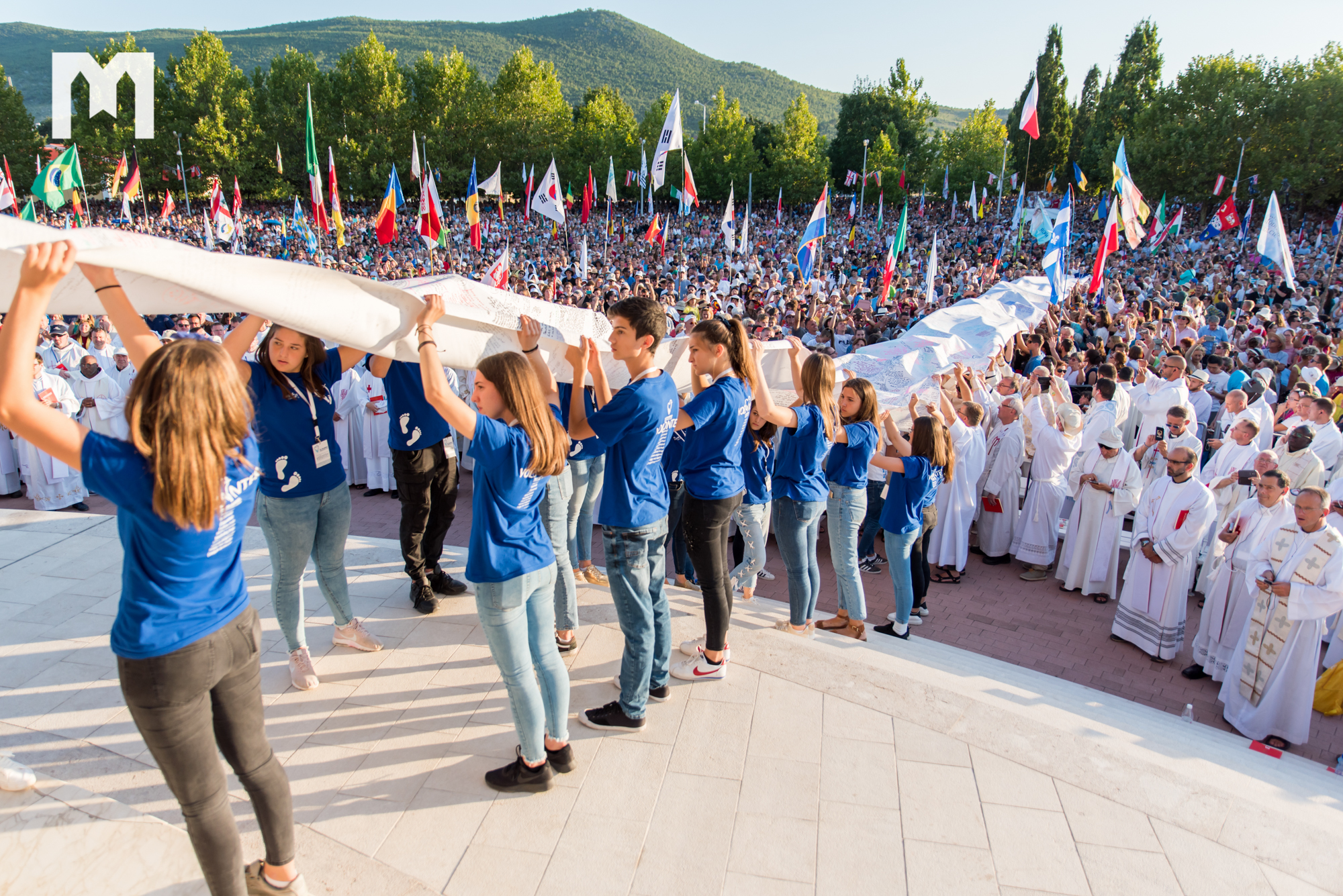 Nakon 25. lipnja, prvoga tjedna mjeseca kolovoza, Međugorje je ponovno postalo centar svijeta, a deseci tisuća hodočasnika, naročito mladih, došli su pronaći odgovor na pitanje „Koje dobro moram činiti?“, a svojim katehezama i homilijama načine da zadobiju život vječni, ponudili su im kardinal Robert Sarah, nadbiskup Luigi Pezzuto, nadbiskup Tadeusz Wojda, biskup Guido Gallese i fra Miljenko Šteko, te sam papa Franjo koji je prvoga dana 32. Mladifesta, svim sudionicima, iz 54 zemlje, uputio svoju poruku.